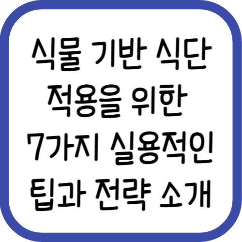 이러한 팁과 전략을 활용하여 식물 기반 식단을 적용하고 건강하고 지속 가능한 라이프스타일을 만들어 보세요. 조금씩 시작하고 자신에게 맞는 방식을 찾아나가면, 식물 기반 식단이 삶의 일부가 될 것입니다. 함께 건강하고 행복한 삶을 즐기세요!