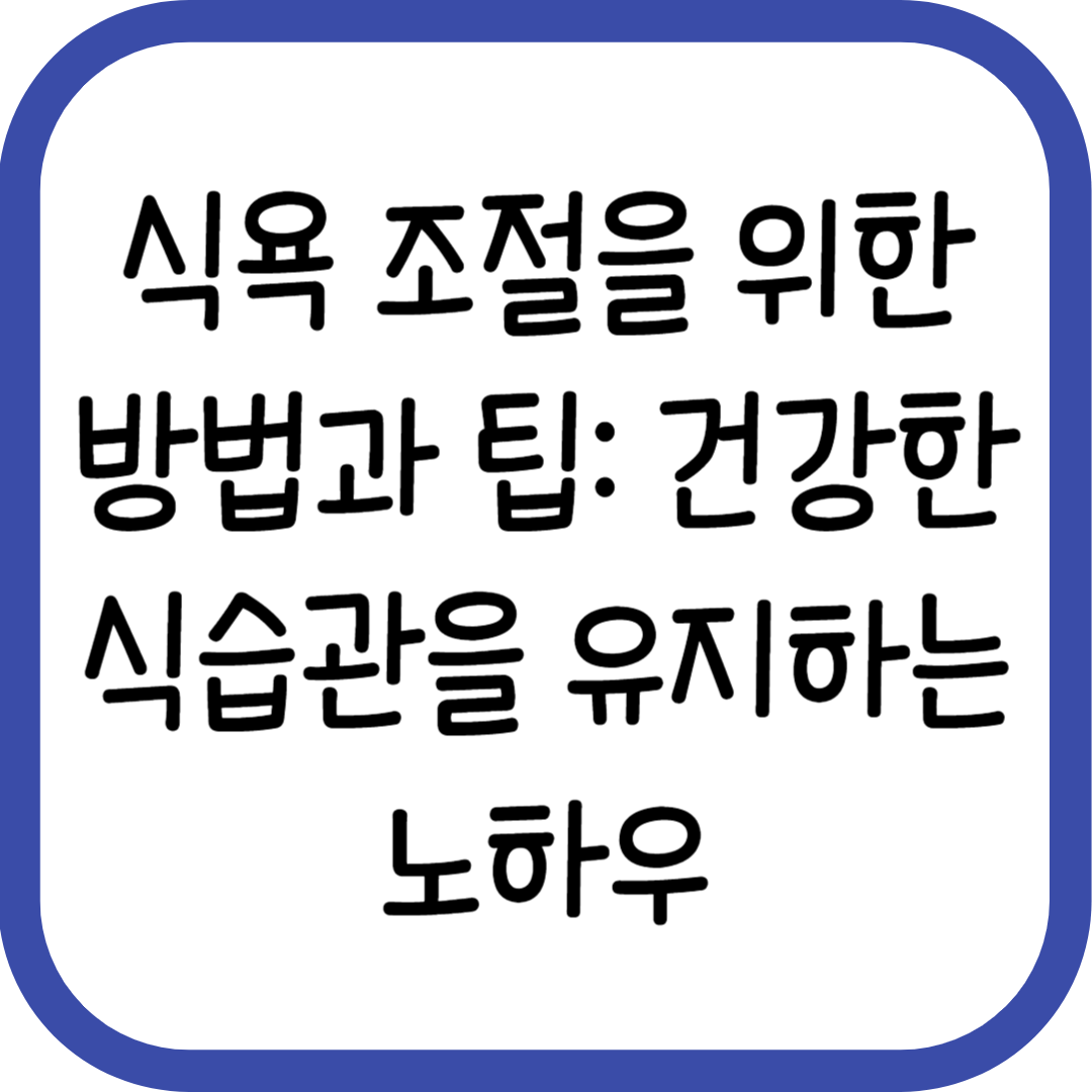 식욕 조절을 위한 방법과 팁: 건강한 식습관을 유지하는 노하우