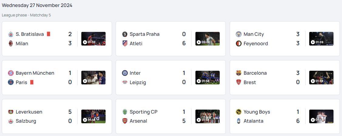 - 스파르타 프라하 0 : 6 아틀레티코 마드리드